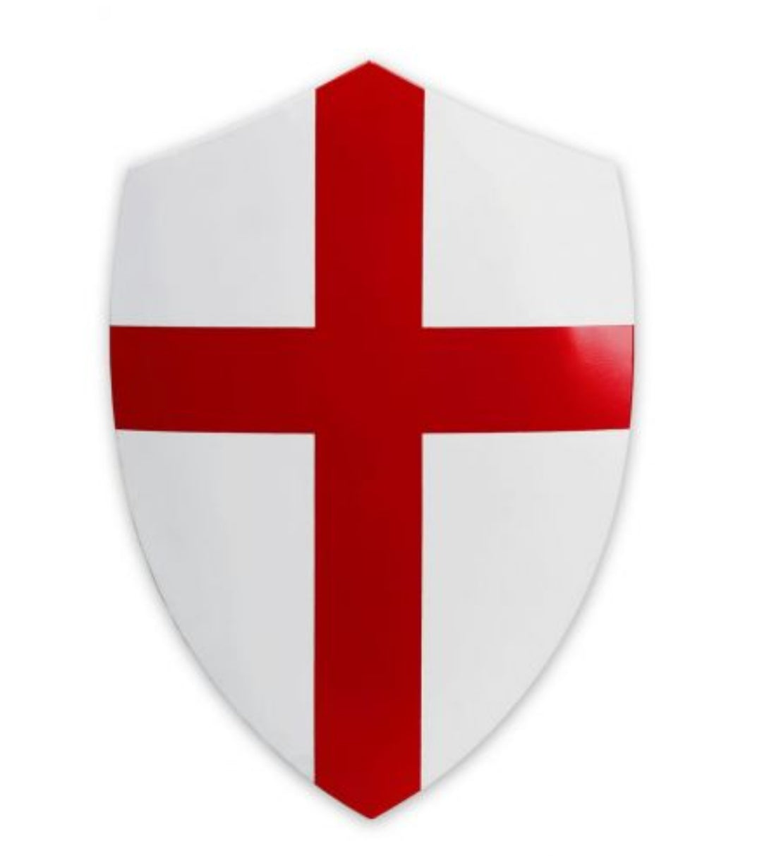 Bouclier Médieval blanc des chevaliers des templiers avec la fameuse croix rouge en son centre.